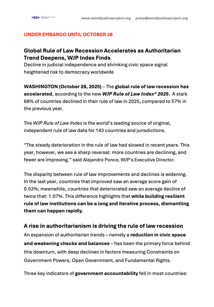 The World Justice Project (WJP) is releasing microdata for the first time, drawing on data from the WJP EUROVOICES general population poll (“People’s Voices”). It features detailed, anonymized survey responses from more than 64,000 individuals living in 110 subnational regions across the 27 European Union (EU) Member States.